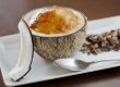 След като сме намазнили формичките с разтопено гхи масло, капваме по 5 капки стевиола с ванилия във всяка от формичките. На дъното на всяка формичка поставяме по 2 от резенчетата портокал. Върху тях слагаме по 1/2 с.л. масло гхи.